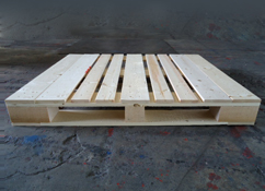 The “Euro Wood Pallet” is made with wooden blocks for fork lift operation at four elevations.